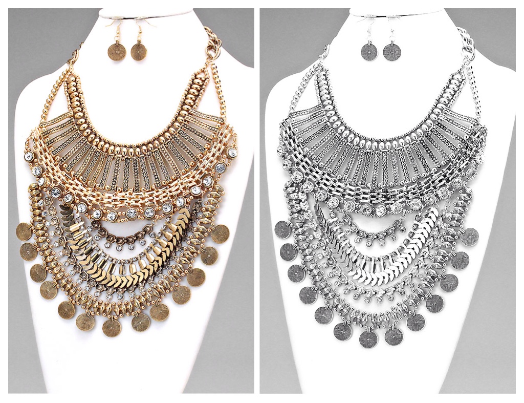 Stunning crystal accented tribal armour necklace.