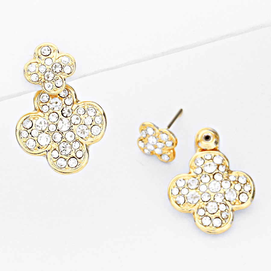 Funky and glamorous! Pave crystal clover double earrings. Smaller crystals can be with alone as studs.