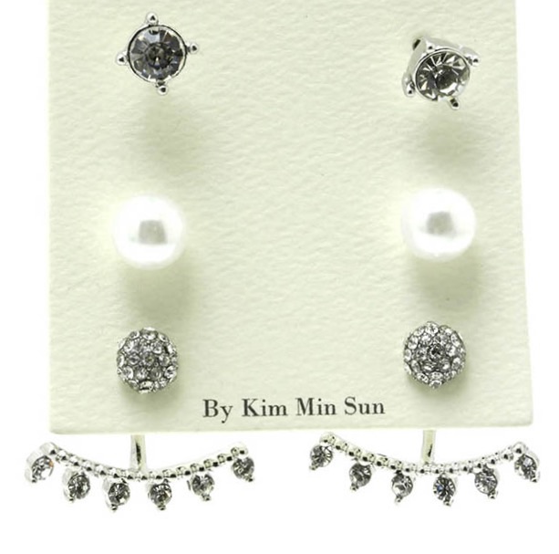 Double sided earrings with crystal stone details.