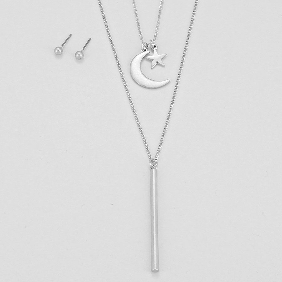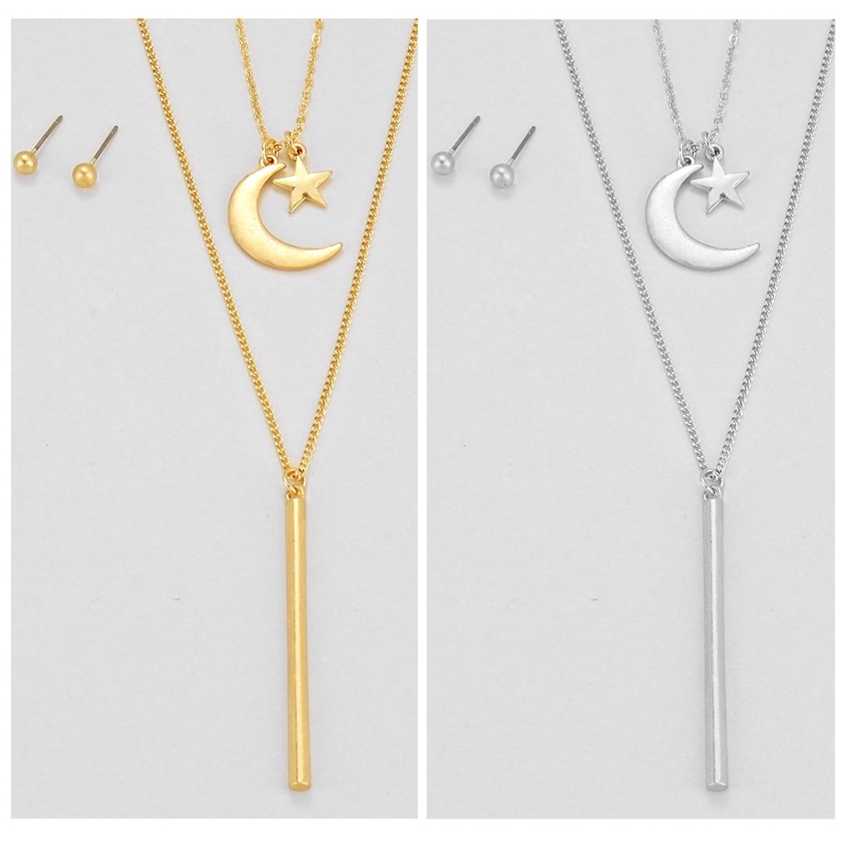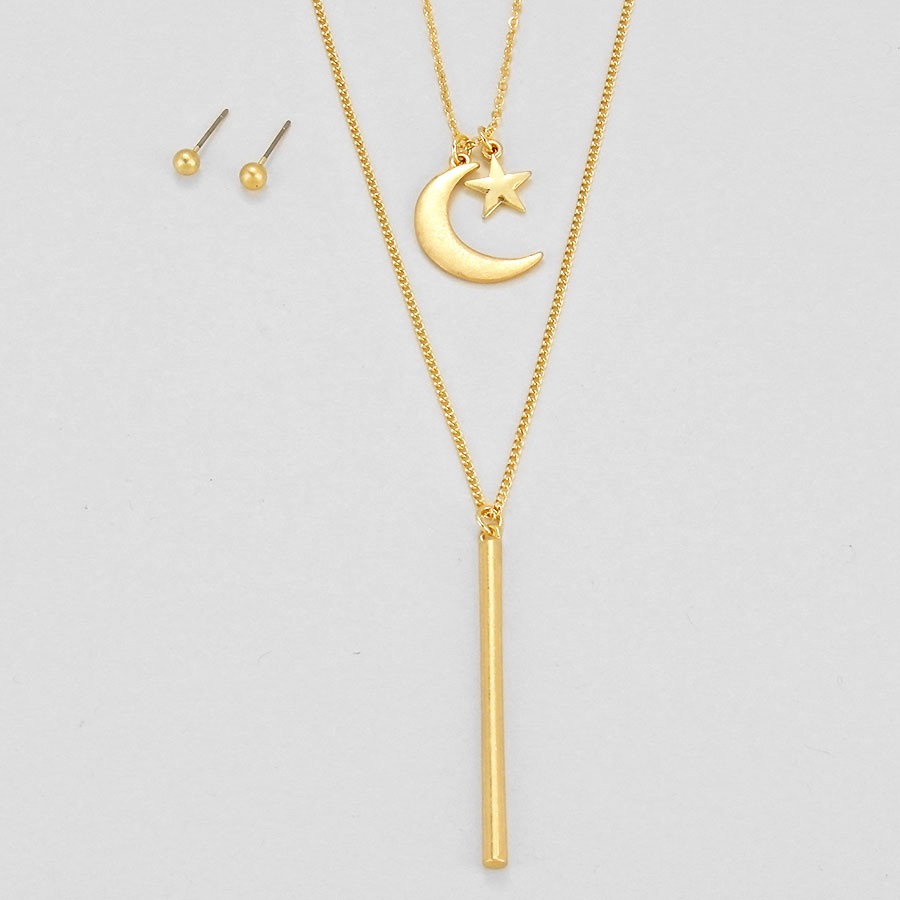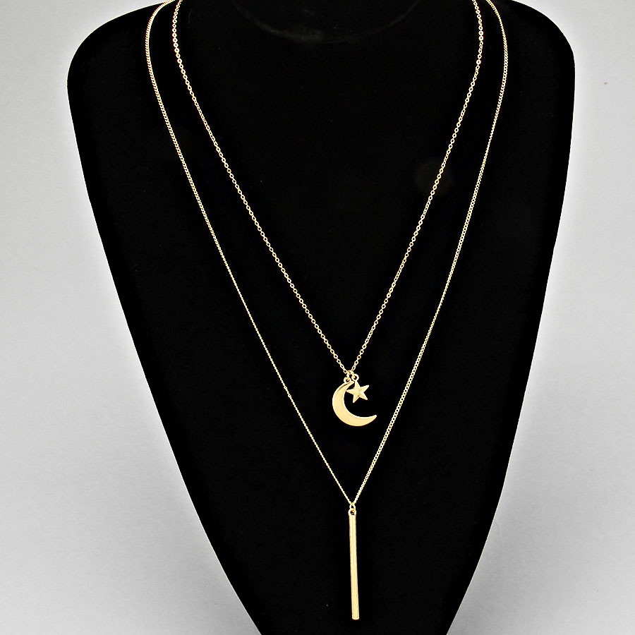 Gold toned textured chain necklace featuring a crescent pendant with crystal detail. Necklace : 16" length with 2" extender Pendant : 0.25" X 1.75" Lobster clasp closure