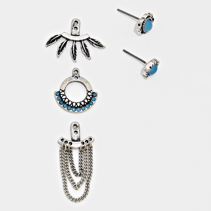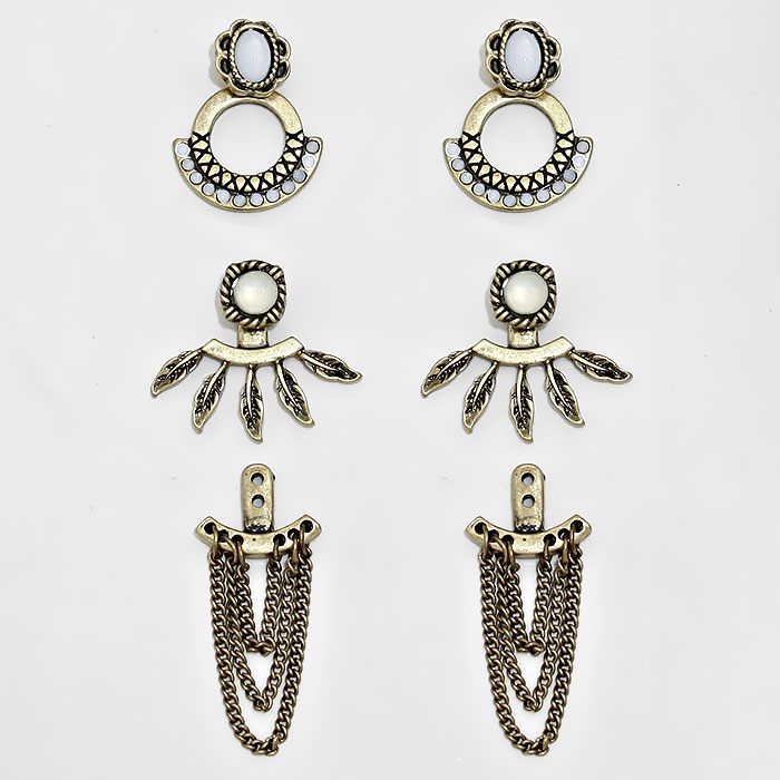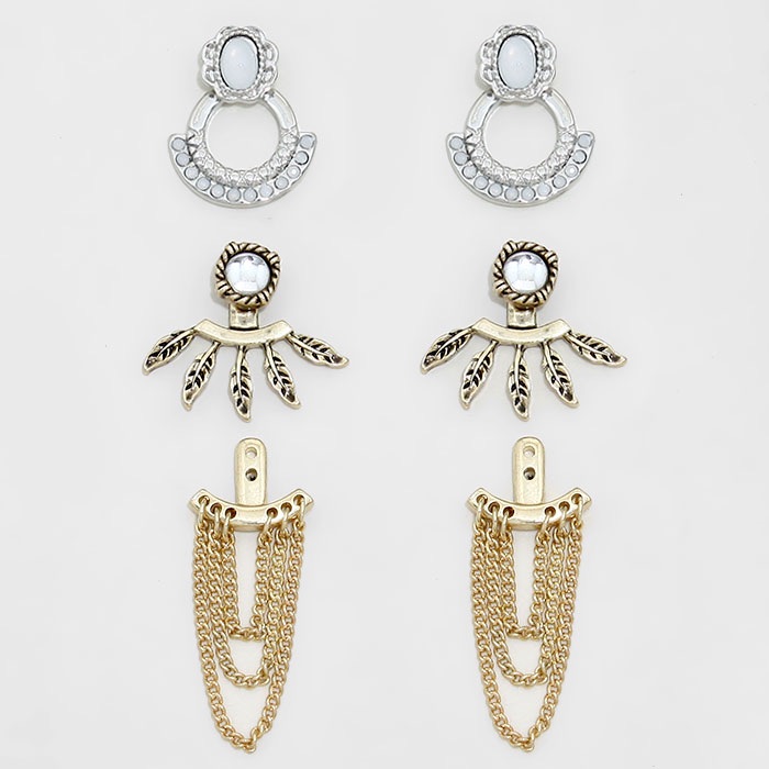 Mix and match these ear jacks for a variety of looks. - 2 pair stud earrings - 2 pairs ear adjustable jackets - Post back