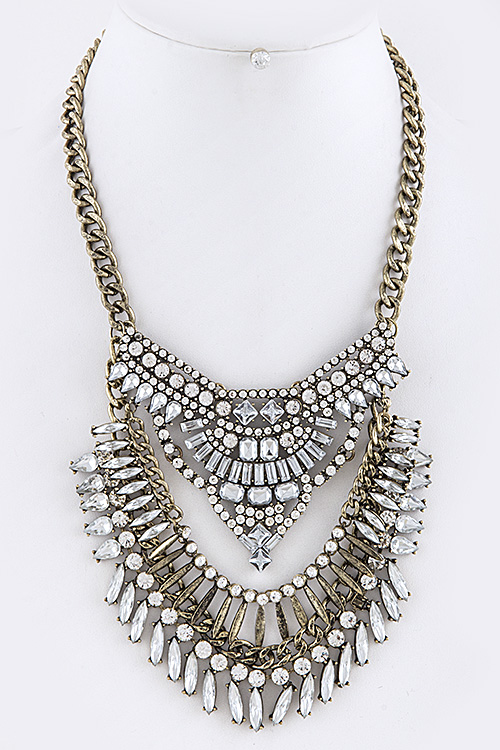 Crystal encrusted bib chain necklace.