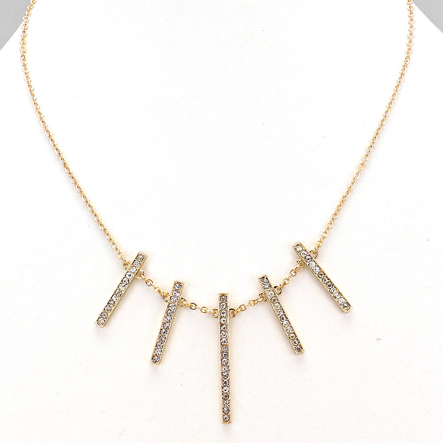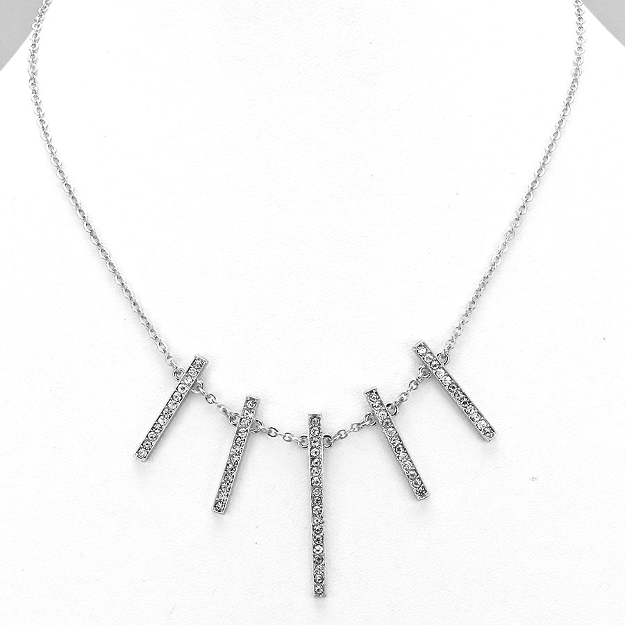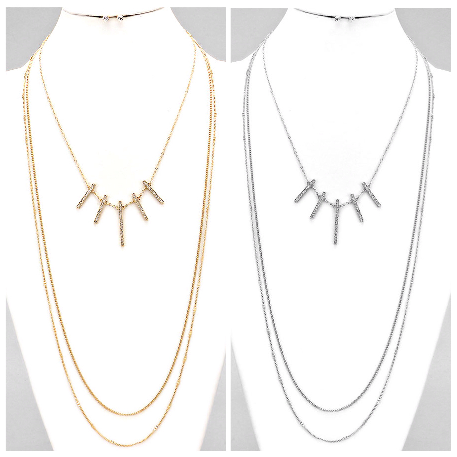 Crystal stone accents in linear bars with long chains. Necklaces can be worn separately. - 31" length + 3" extension - 17" length + 1.5" extension - Post back earrings
