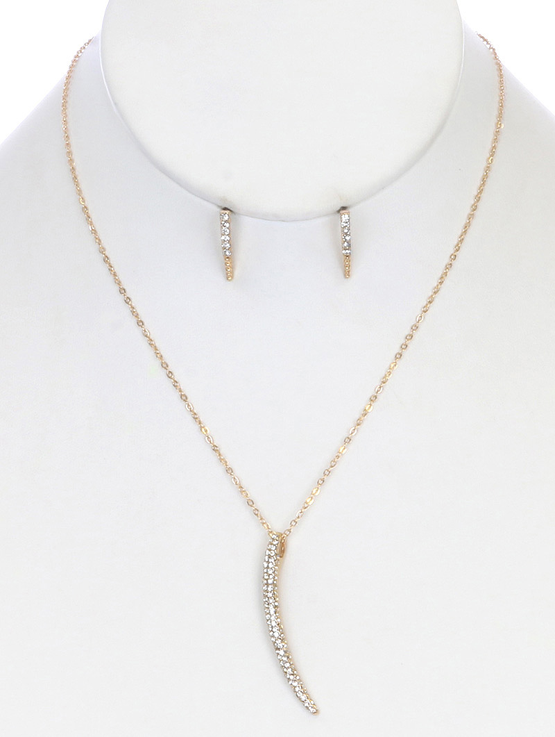 Pave crystal horn pendant, necklace, and earring set. - 18" necklace - 2" pendant - Lobster clasp closure - Post back earrings