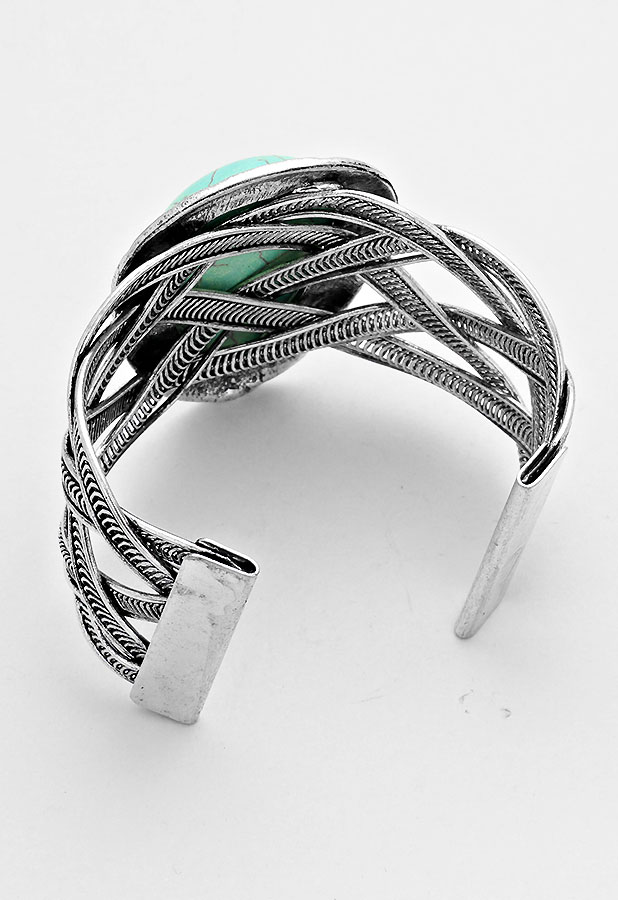 Turquoise stone textured cuff bracelet. - 2.5" height