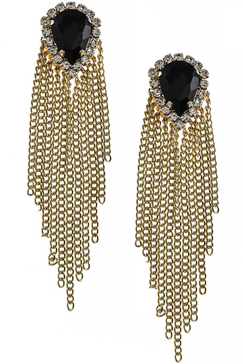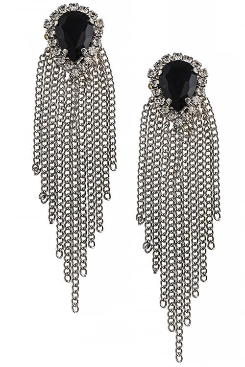 Chain fringe teardrop earrings. - Approximately 3" drop - Post back