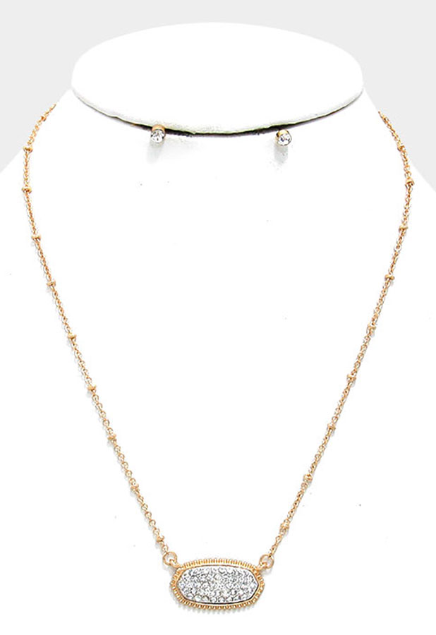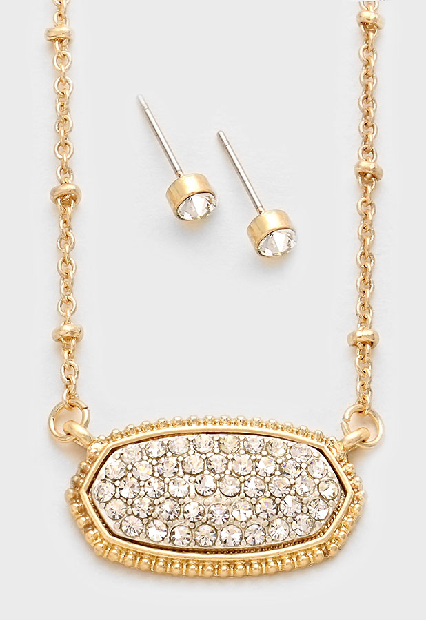 Crystal pendant accent necklace. - Length: 18" + 3" extension - Pendant: 1" - Post back earrings