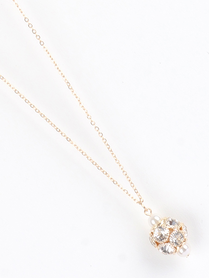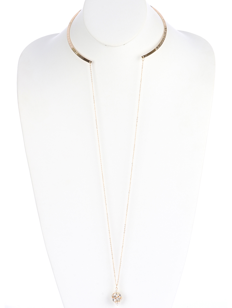 Choker necklace with drop chain and pave crystal stone ball detail. Can be worn with chain to front or back! - 5" diameter and 13" drop