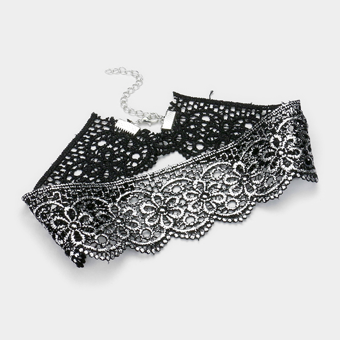 Reversible lace choker - Necklace: 11" + 3" ext - Length : 1.8"
