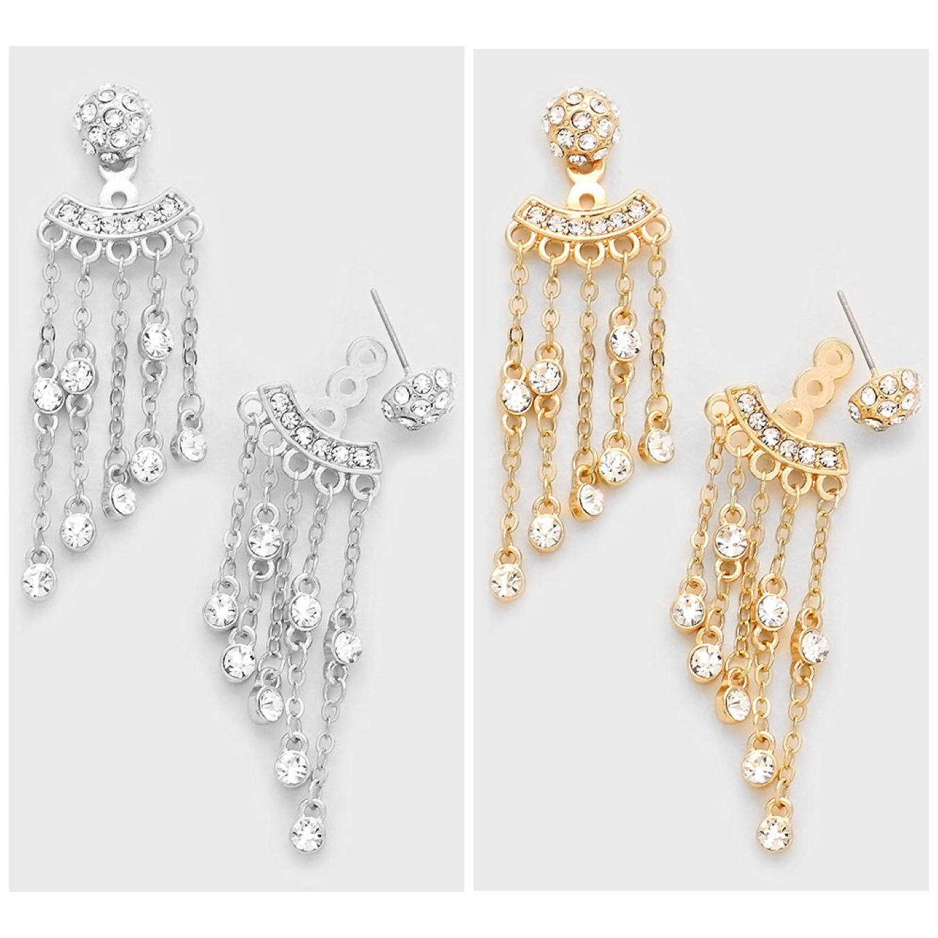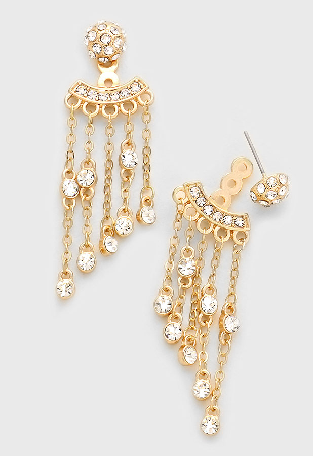 Crystal fringe ear jackets. - 2.25" length, 0.75" width - Post back