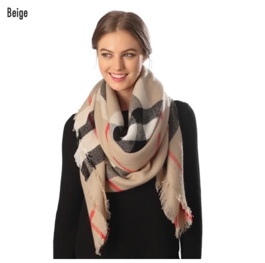 Plaid blanket scarf. - 55" x 55" - 100% polyester