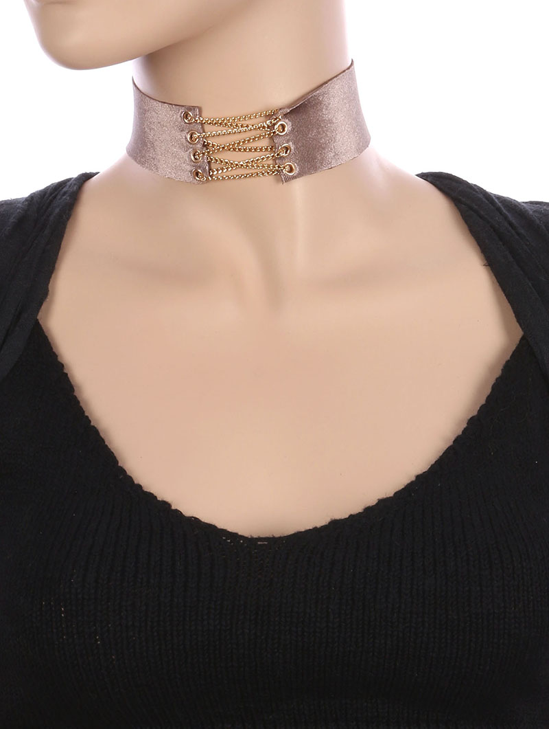 Chain laced velvety choker necklace. 12" length and 1.5" height