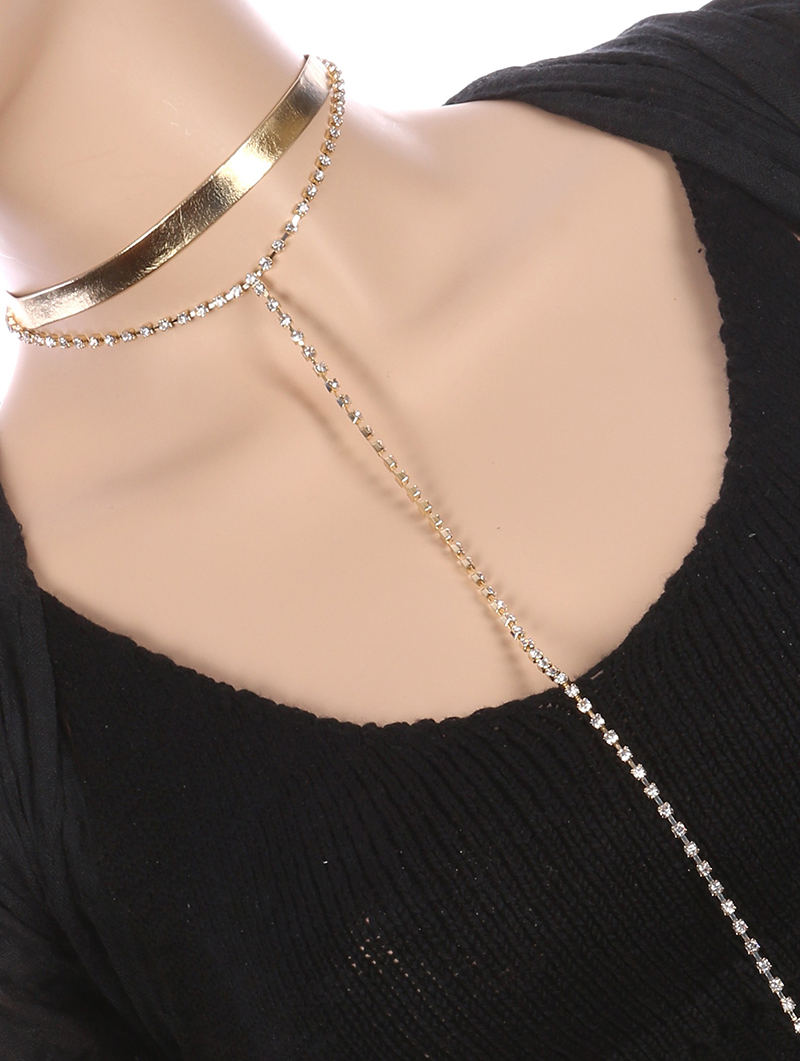 Two piece choker set. Faux leather choker: 12" length Rhinestone choker: 12" length and 11" drop