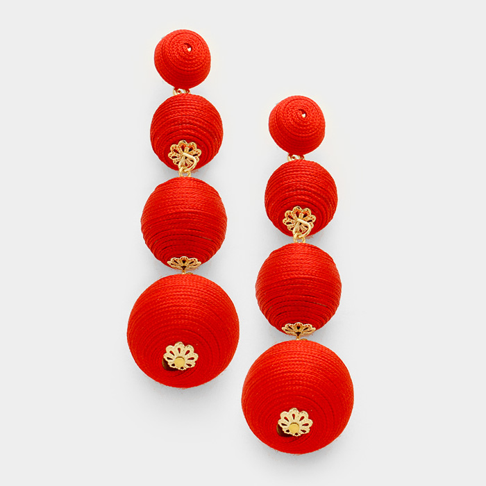 Thread ball earrings. - 1" x 3.25" - Post back
