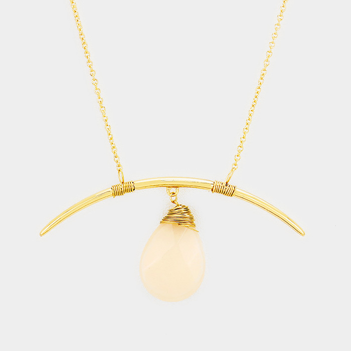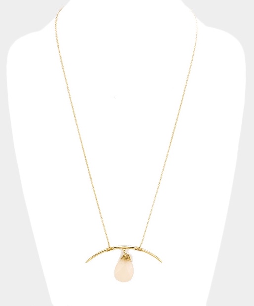 Metal bar and teardrop semi precious pendant necklace. • Necklace size : 26" + 3" ext • Pendant size : 2.75" x 1.25" • Lead and nickel compliant