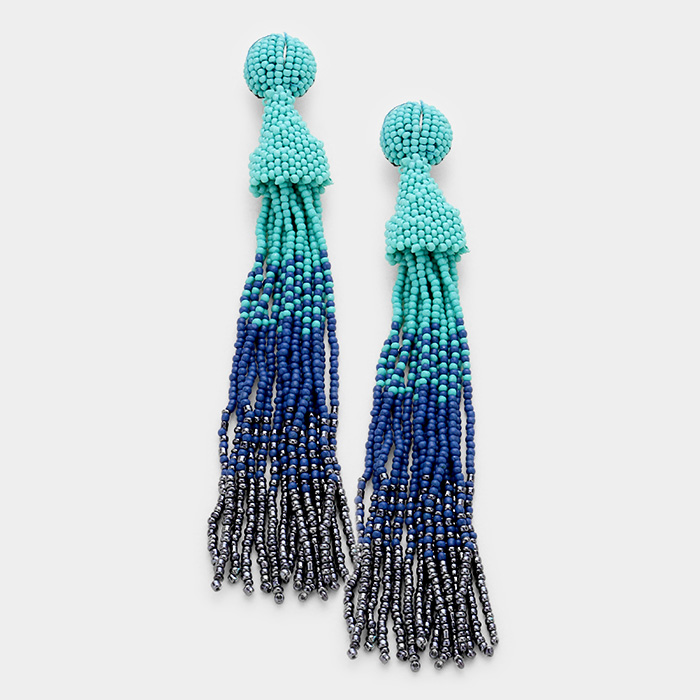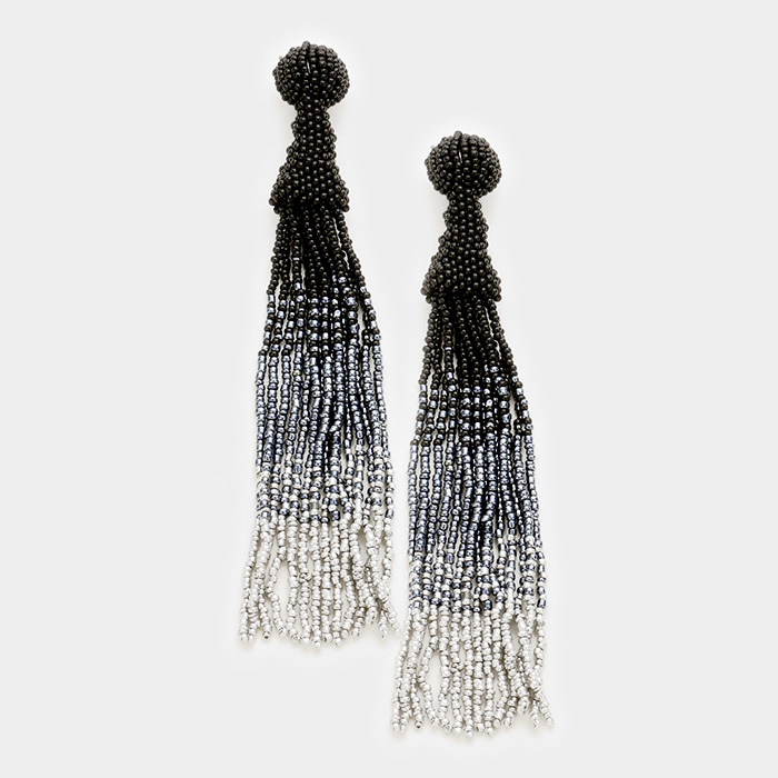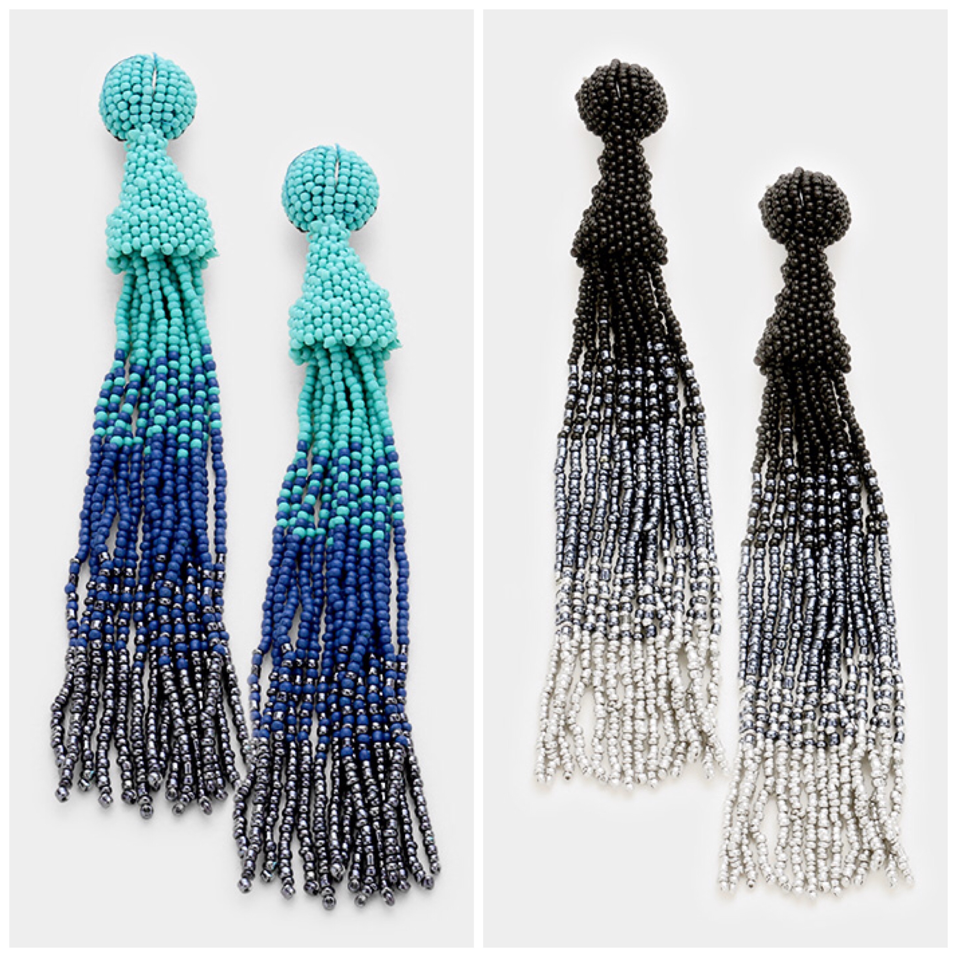Ombre beaded tassel earrings. - 0.75” x 5.5” - Post back