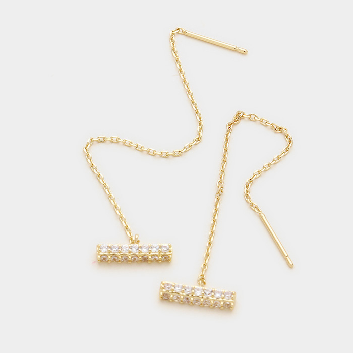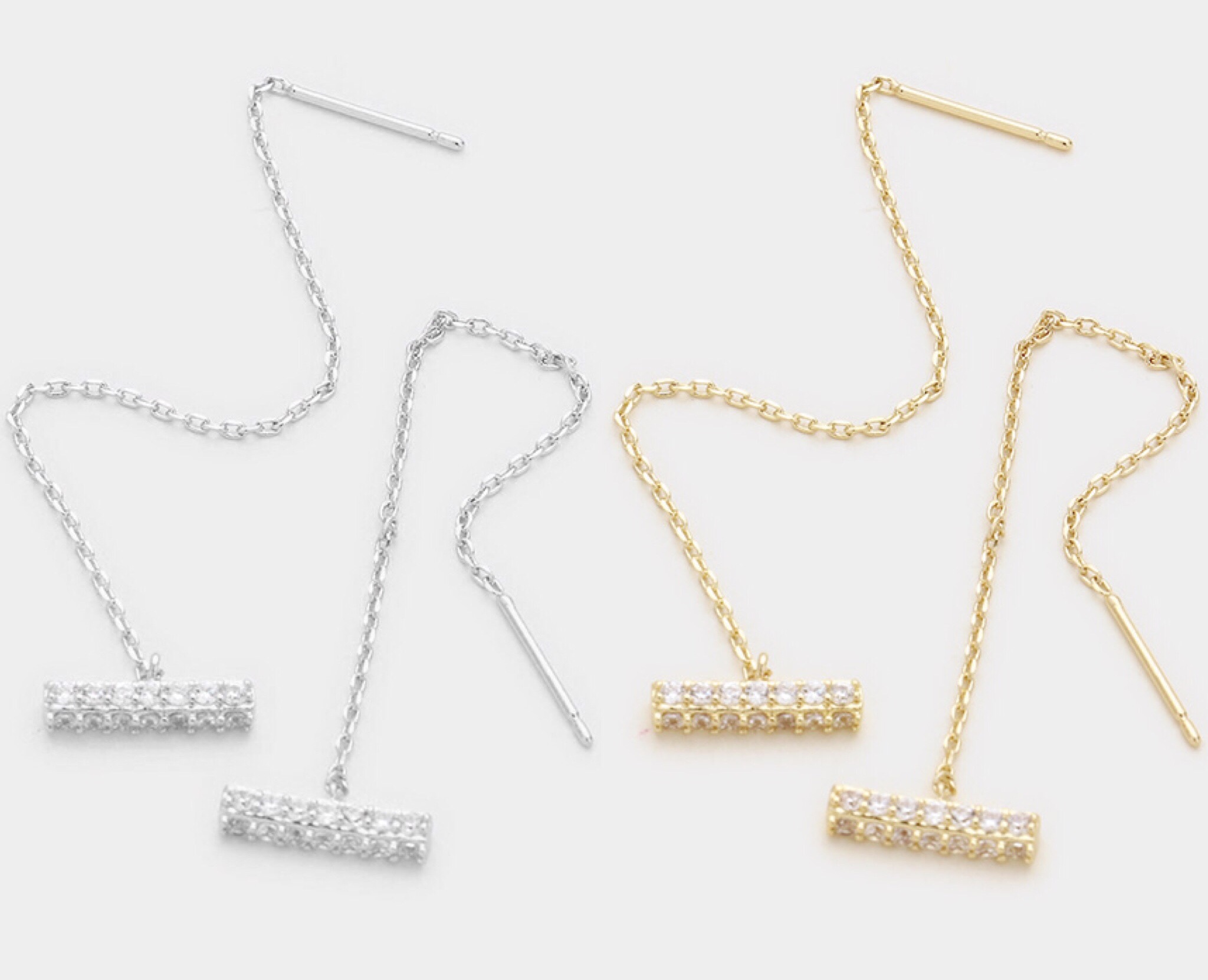 Cubic zirconia bar threader earrings. • 0.5" X 2.25"