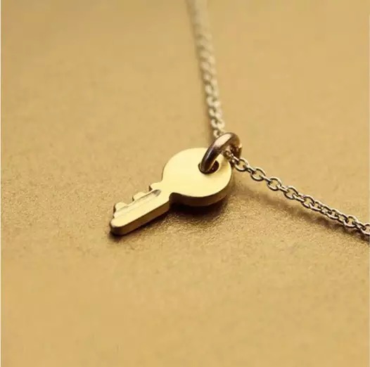 Mini key pendant necklace. Beautifully packaged for gifting! - 14" length with 2" extender - Pendant: .4” - Lobster clasp closure
