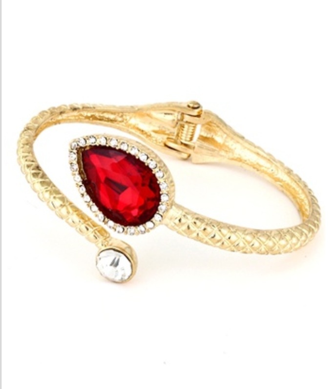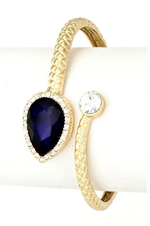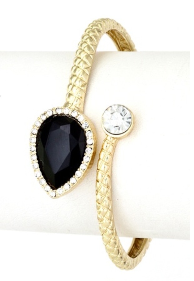 Textured bracelet with crystals and a glass stone. - 2.5" diameter - Hinge closure
