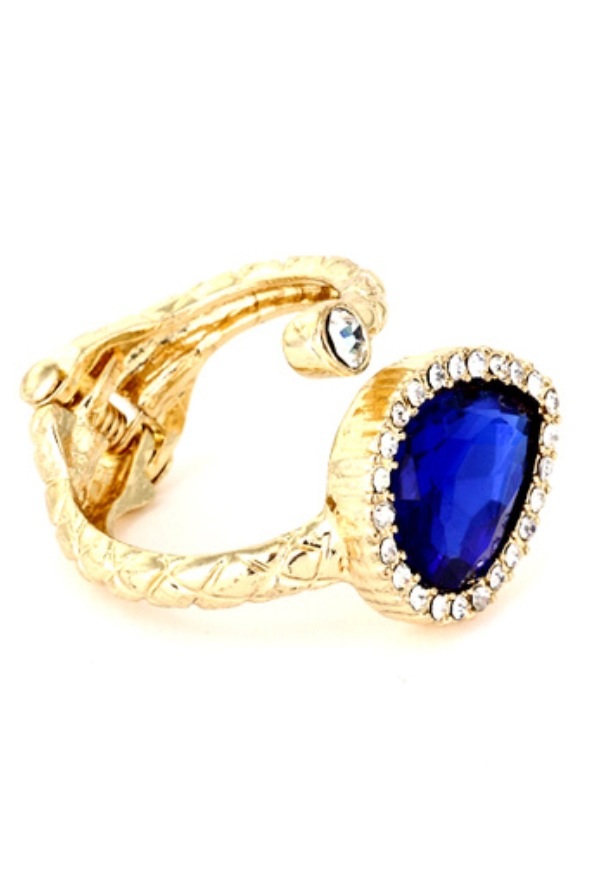 A textured ring with crystals and glass stone. - Width: 3/4" - Hinge closure