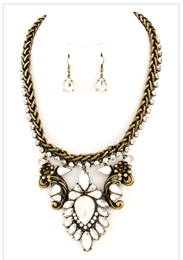 Glass stone pendant necklace and earrings set. A show stopping piece! - Length: 19" + 3" extension - Earring drop: 1.25" - Fish hook earrings