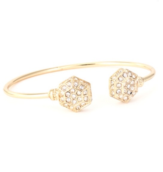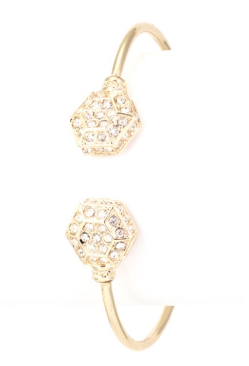 Crystal pave hexagon open cuff bracelet - 2.5" approx. diameter