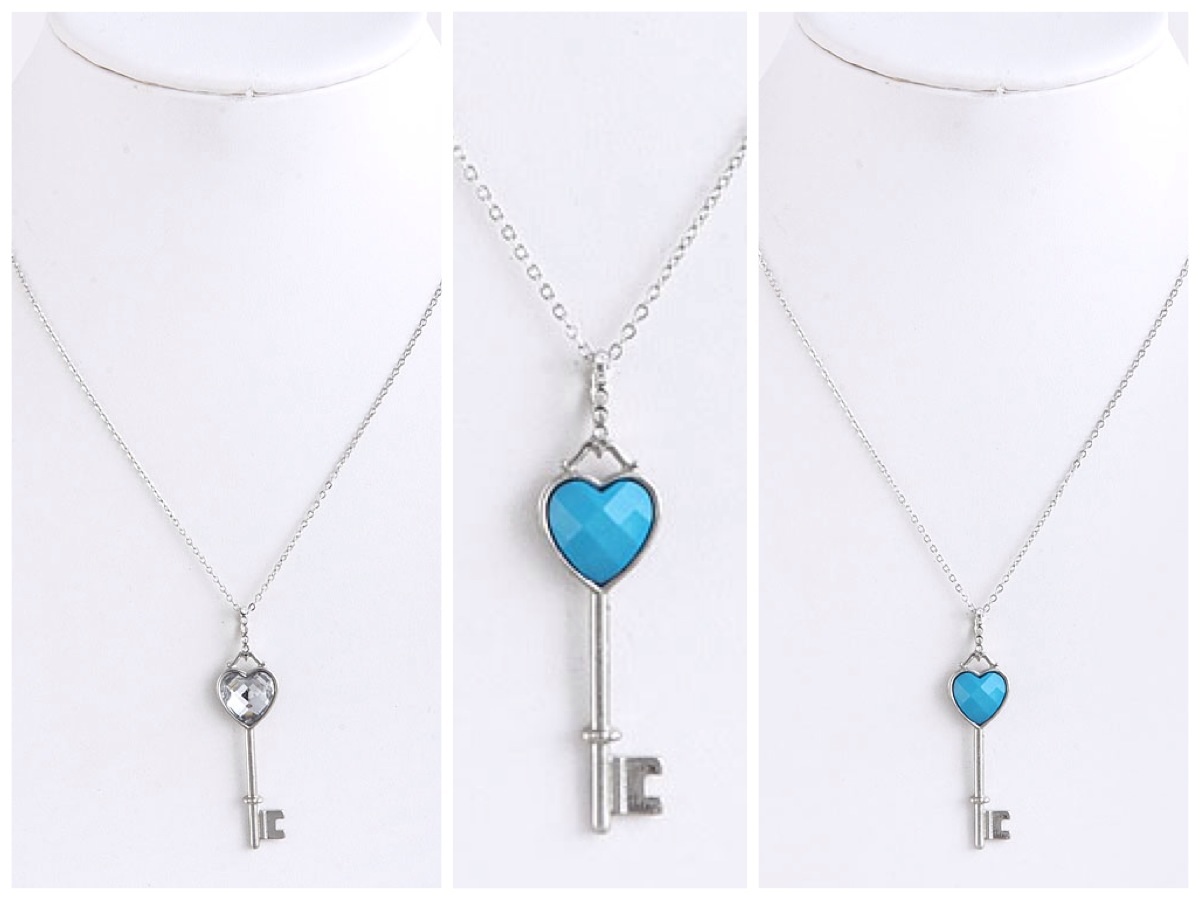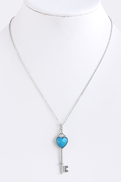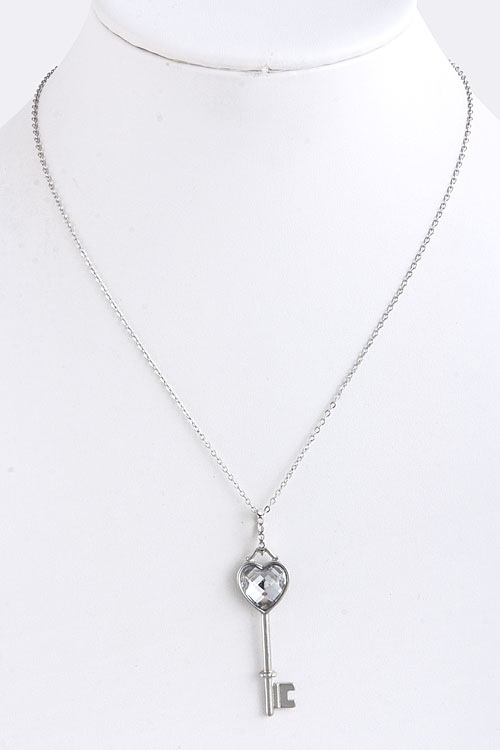 Heart shaped jewel key pendant necklace. - Chain length: approx 17" - Pendant length: 1.8" - Lobster claw clasp with 3" extender