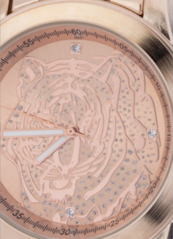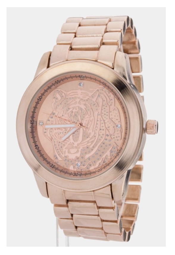 Boyfriend watch with a crystal tiger inlay - Bezel Diameter: approx. 1.8" - Strap Width: approx. 1"