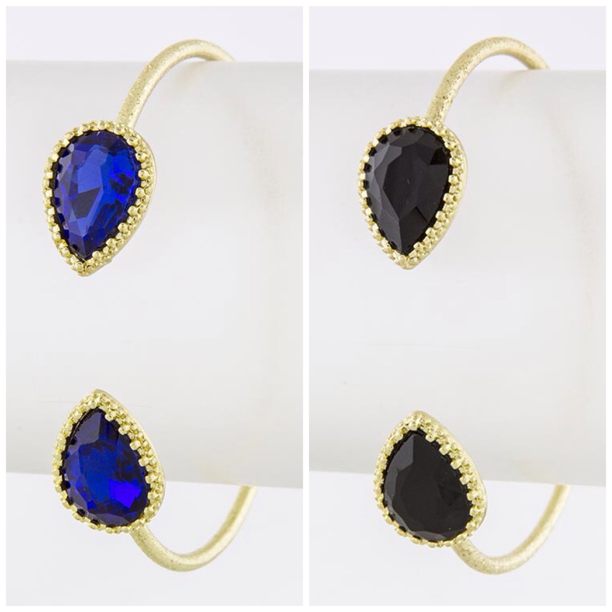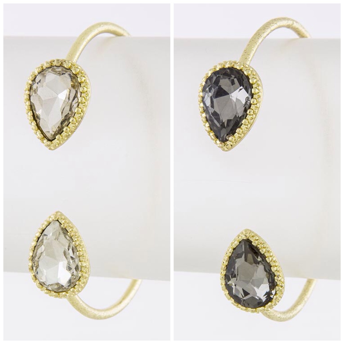 Crystal teardrop tip delicate cuff - 2" approx. diameter - Adjustable