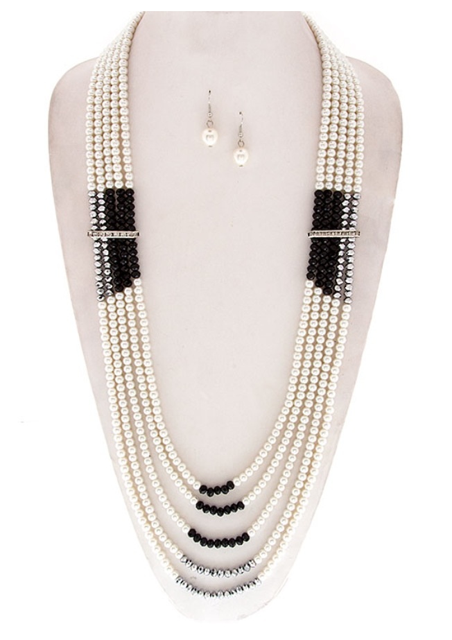 Luxe long pearl necklace with faceted beads and fish hook earrings. - Length approx. 17" with 3" extender - Lobster claw clasp