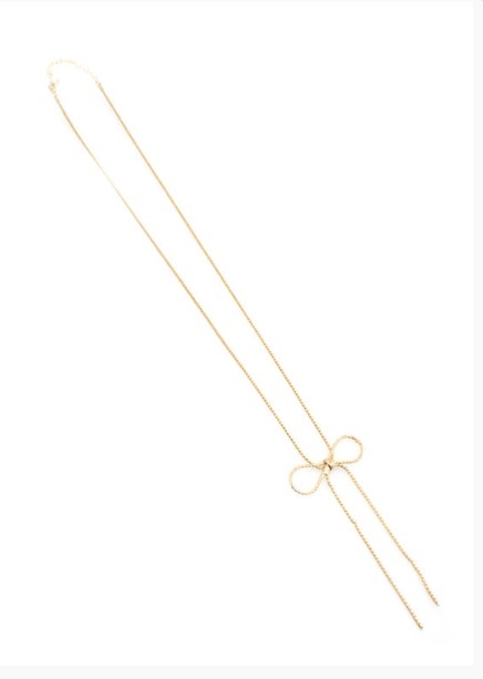 Gold toned textured chain necklace featuring a tied bow detail. - Length: Approx 32.75" - Lobster clasp closure