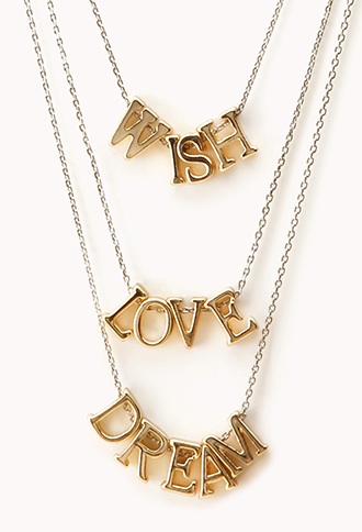 Thin silver colored chain with gold letters spelling the word of your choice: wish, love dream. - Chain length: 17.5 - 21.5" - Lobster clasp closure