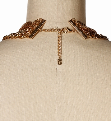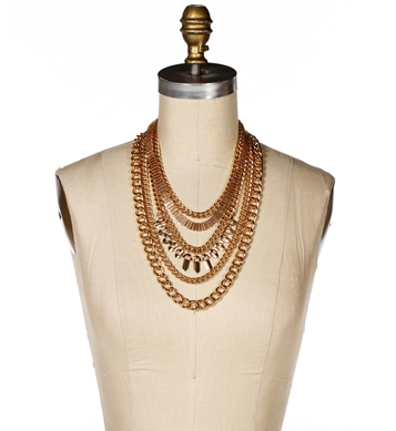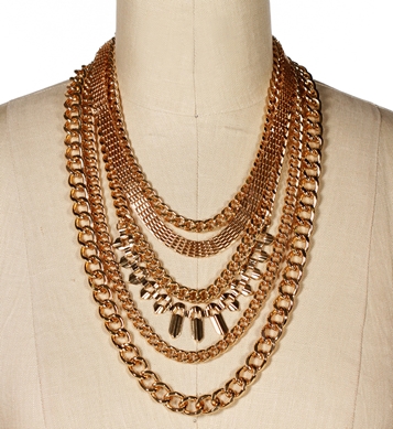 Chain link necklace with 6 rows and geometric details. This one is a gorgeous statement! - Lobster clasp closure