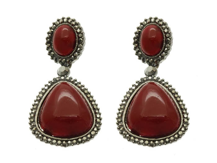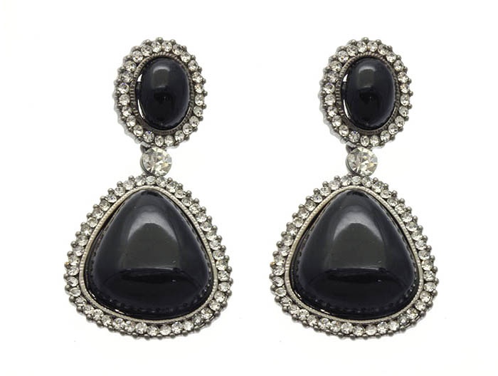Lucite bead earrings featuring a crystal stone. - Drop earring: approx 1.75" - Post back
