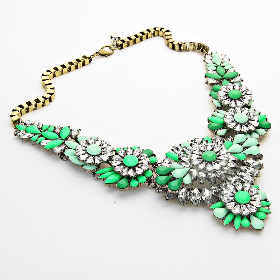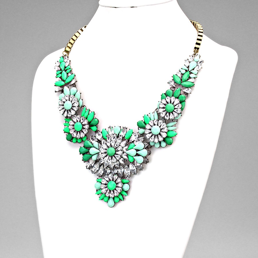 Stunning multicolor necklace encrusted with beautiful muilt-colored resin stones and crystals in a floral design.