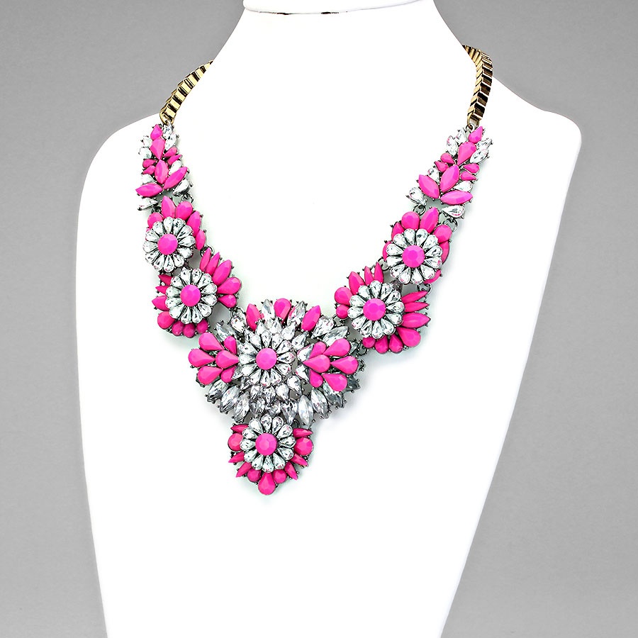 Stunning multicolor necklace encrusted with beautiful muilt-colored resin stones and crystals in a floral design.