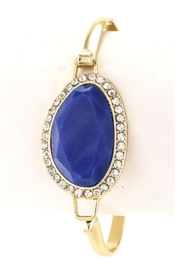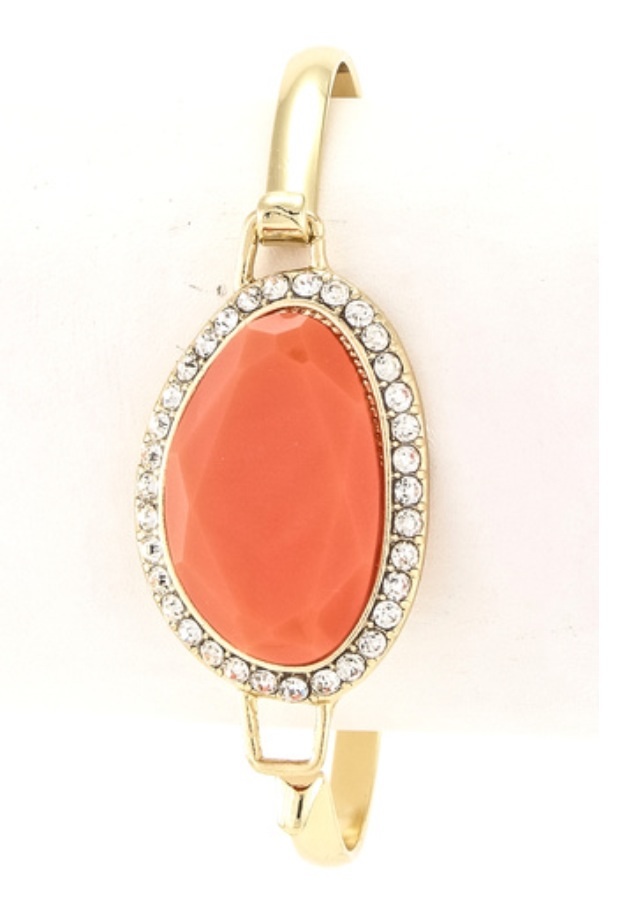 Rhinestone bordered jewel pendant bracelet. - Stone width: 7/8" - Diameter: 2.5 " - Hook closure
